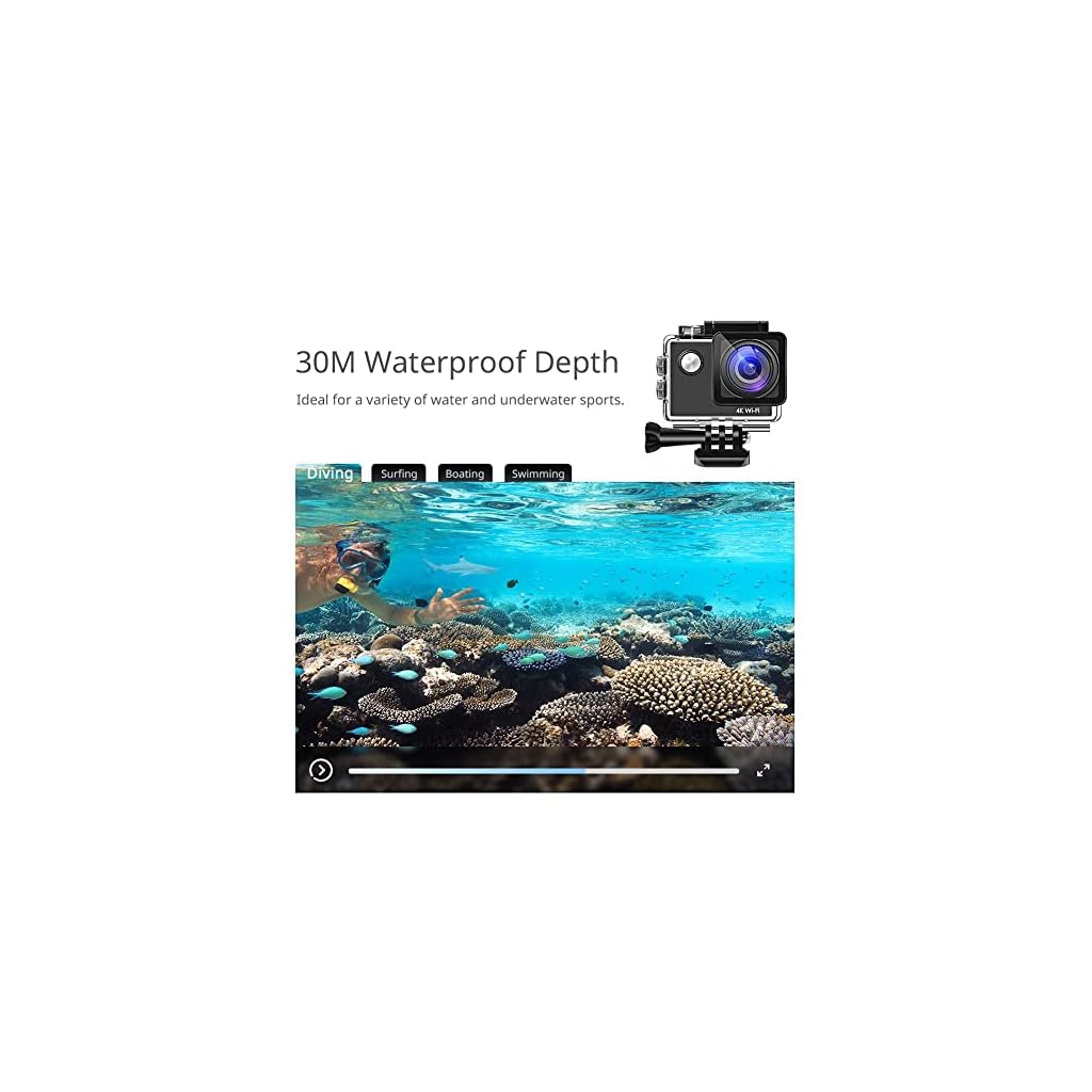 【Ultra Native 4K Action Kamera】Professionelle 4K 30fps, außerdem 2,7K 30fps, 1080P 60fps, 1080P 30fps, 720P 120fps Videoauflösung optional und 20MP Foto verfügbar.