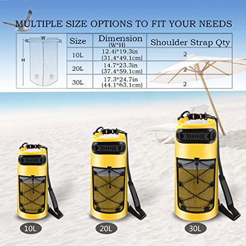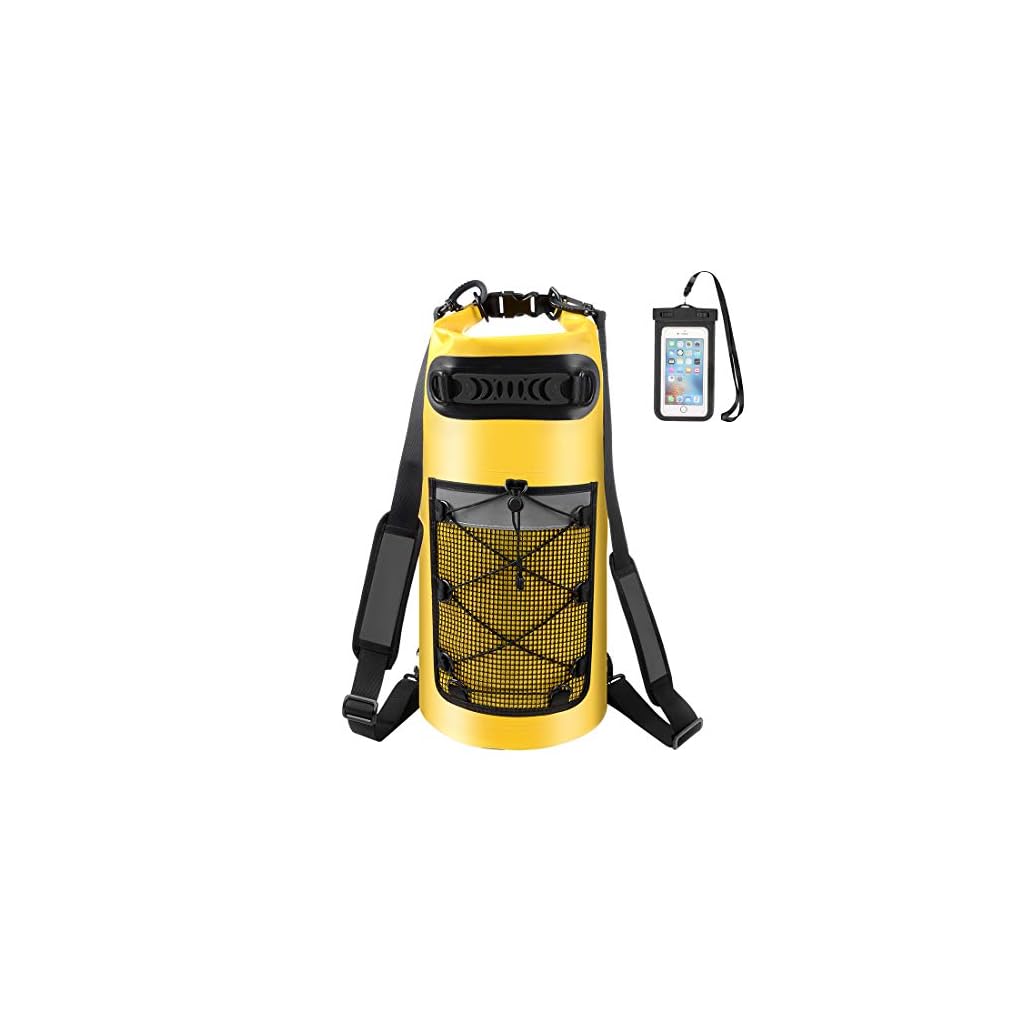 ALEENUN wasserdichte Tasche, wasserdicht, mit Handytasche und langem verstellbarem Riemen für Outdoor-Aktivitäten und Wassersport, Camping, 10 l/20 l/30 l., gelb, 10 l, Traditionell