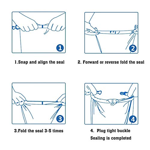 ♥ Binden Sie die Oberseite des Beutels mindestens 3Mal ab und befestigen Sie die Schnalle, um die Versiegelung sicherzustellen