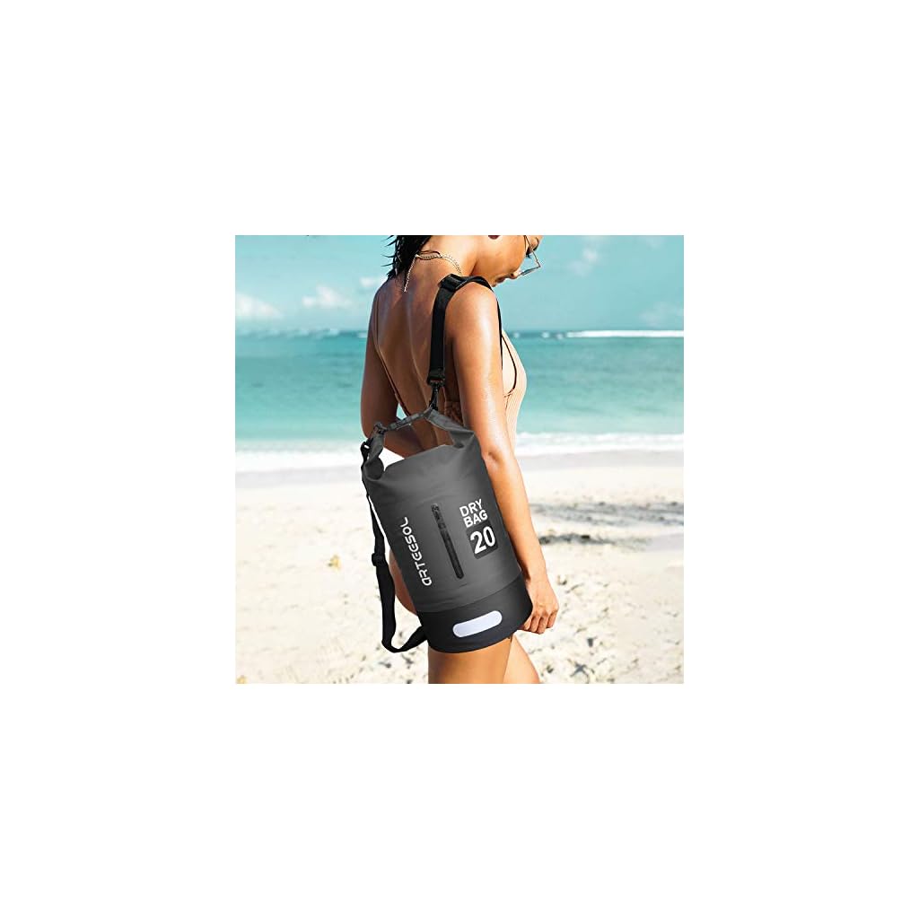 Sicherheit Die neue Technik Reflektorstreifen geben Ihnen eine hohe Sichtbarkeit in der Nacht. Sie werden von Booten, Jet-Skis und Surfern nicht übersehen, sodass es zu keinem Zusammenstoß kommt. Der wasserdichte Seesack kommt mit doppelte Schultergurte. Dank der Schulterstreifen lässt sich die Trockentasche sehr angenehm für jeden Körperbau und sowohl als Umhängetasche auh als Rucksack und Handtasche umfunktionieren, sehr bequem zu tragen.