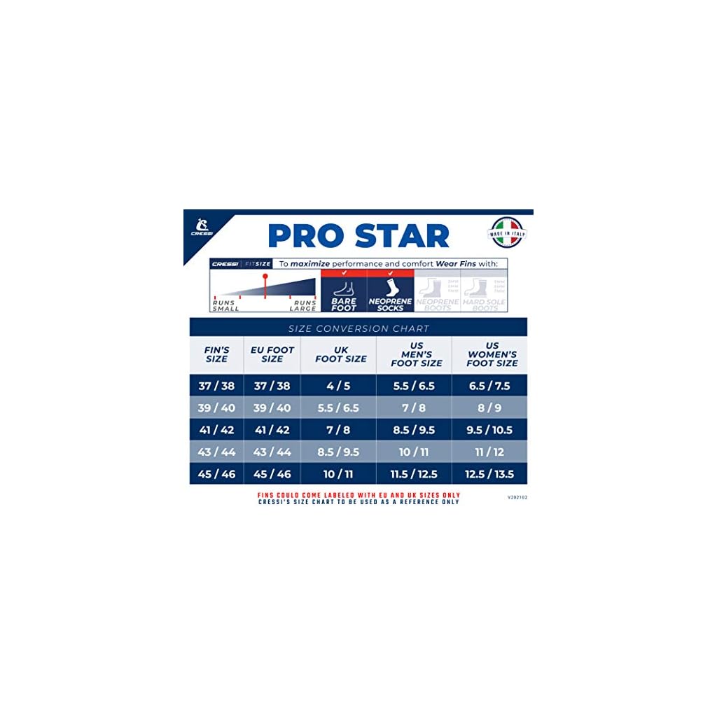 Pro Star ist, wenn man einmal von den speziellen Apnoeflossen absieht, die leistungsfähigste Cressi-Flosse mit geschlossenem Schuh. Sie eignet sich hervorragend für Schnorcheltauchen, Apnoetauchen und Gerätetauchen.