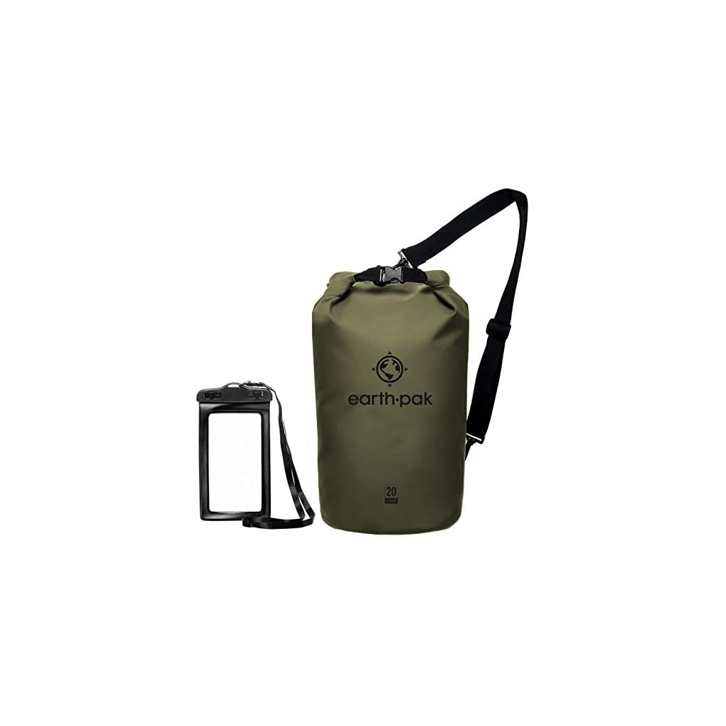 Earth Pak – Wasserdichter Packsack mit Schultergurt und wasserfester Handyhülle – Ideale Rolltop Tasche beim Kajak Fahren, Wandern, Camping, Angeln, Bootfahren und Rafting (Waldgrün, 20L)