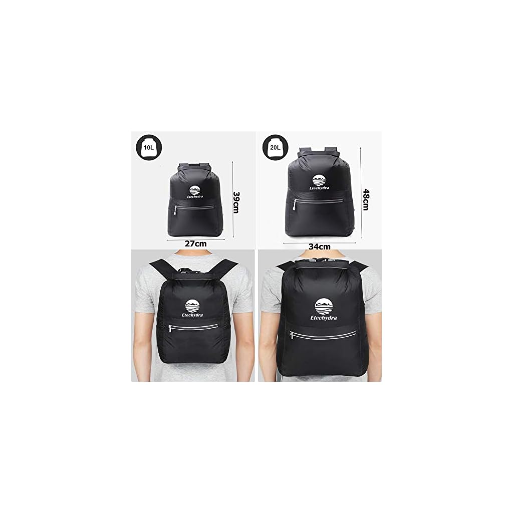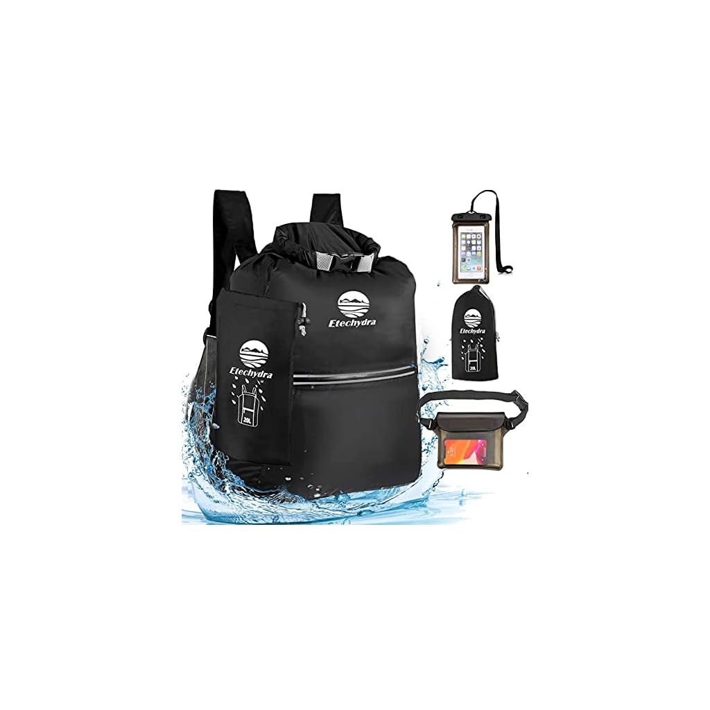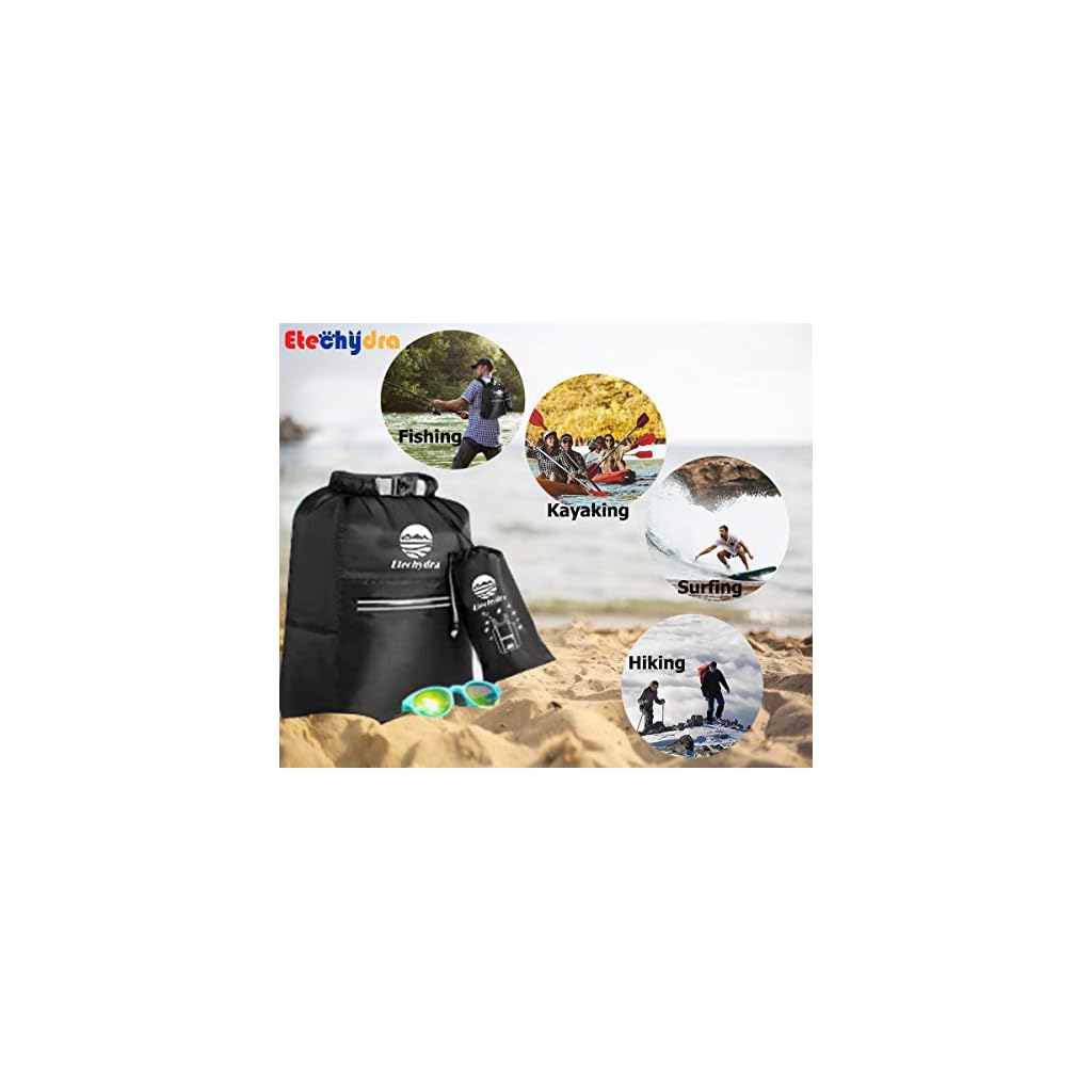 Etechydra Dry Bag 20L Rucksack Wasserdicht Taschen, Ultralight Wasserdichter Packsack Sack Beutel Outdoor für Boote Strand, Kajak, Camping, Bootfahren, Schwimmen, Angeln, Wandern, Schwarz.