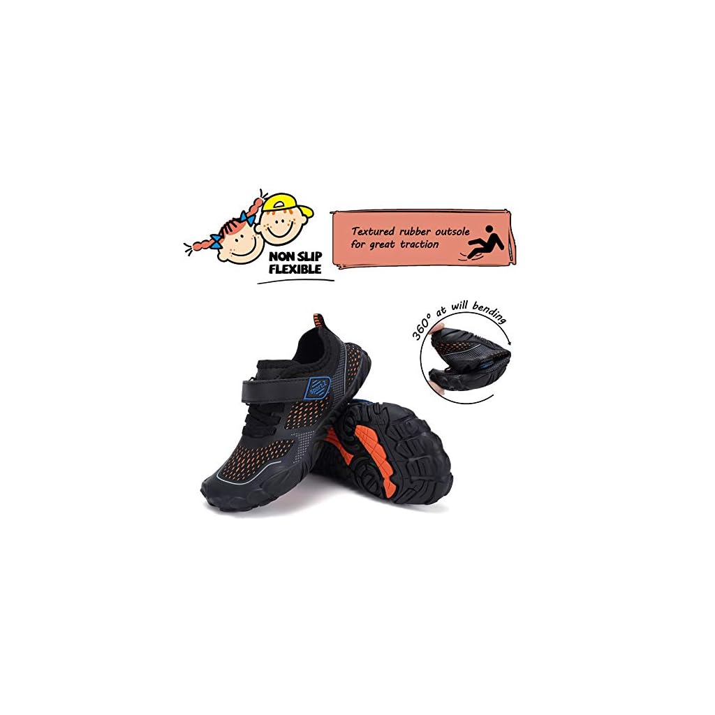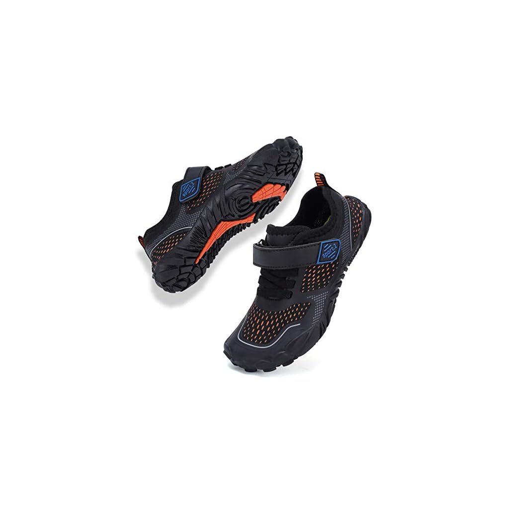 IceUnicorn Kinder Traillaufschuhe Barfußschuhe Mädchen Jungen Atmungsaktiv rutschfest Wanderschuhe Sportschuhe Laufschuhe Strandschuhe(02 Schwarz, 24EU)