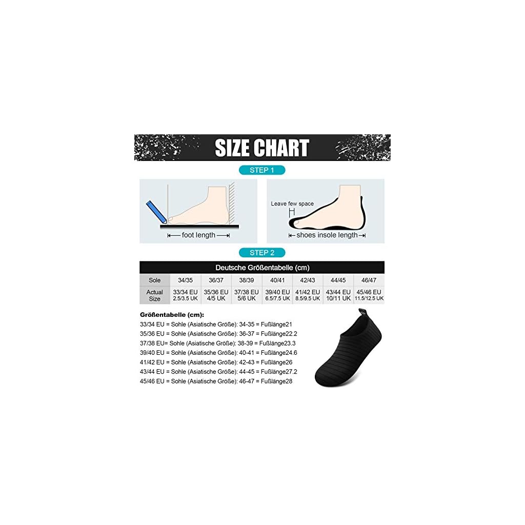 Obermaterial: Neoprene.PERFEKTES MATERIAL: 92% Polyester + 8% Elasthan. Atmungsaktive ultraleichte Stoffe mit feinem Stretch an der Oberseite, flexibel und bequem. Der glatte Hals verhindert ein Scheuern beim Tragen unserer Wasserschuhe. FUSSSICHERHEIT – Tragbare und hochwertige Gummisohle, die Ihre Füße vor Verletzungen durch scharfe Gegenstände schützt. Mit einer ergonomisch geformten, stoßdämpfenden Ausführung