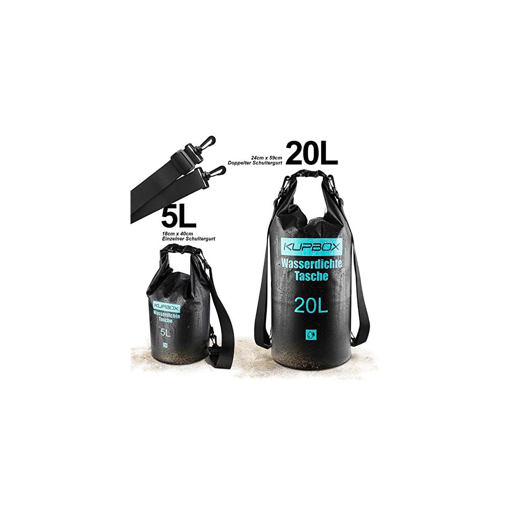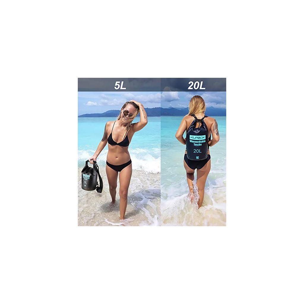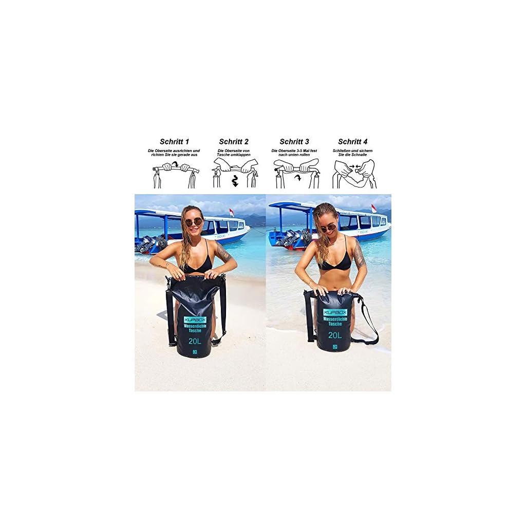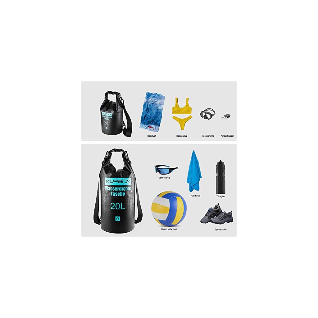 KUPBOX Dry Bag 20L,wasserdichte Tasche mit Verstellbarem Gurt, Dry Bag,100% wasserdichte Packsäcke für Wassersport,Boot Kajak, Angeln, Rafting,Camping usw.Mehrweg-Verpackung. (schwarz, 20L)