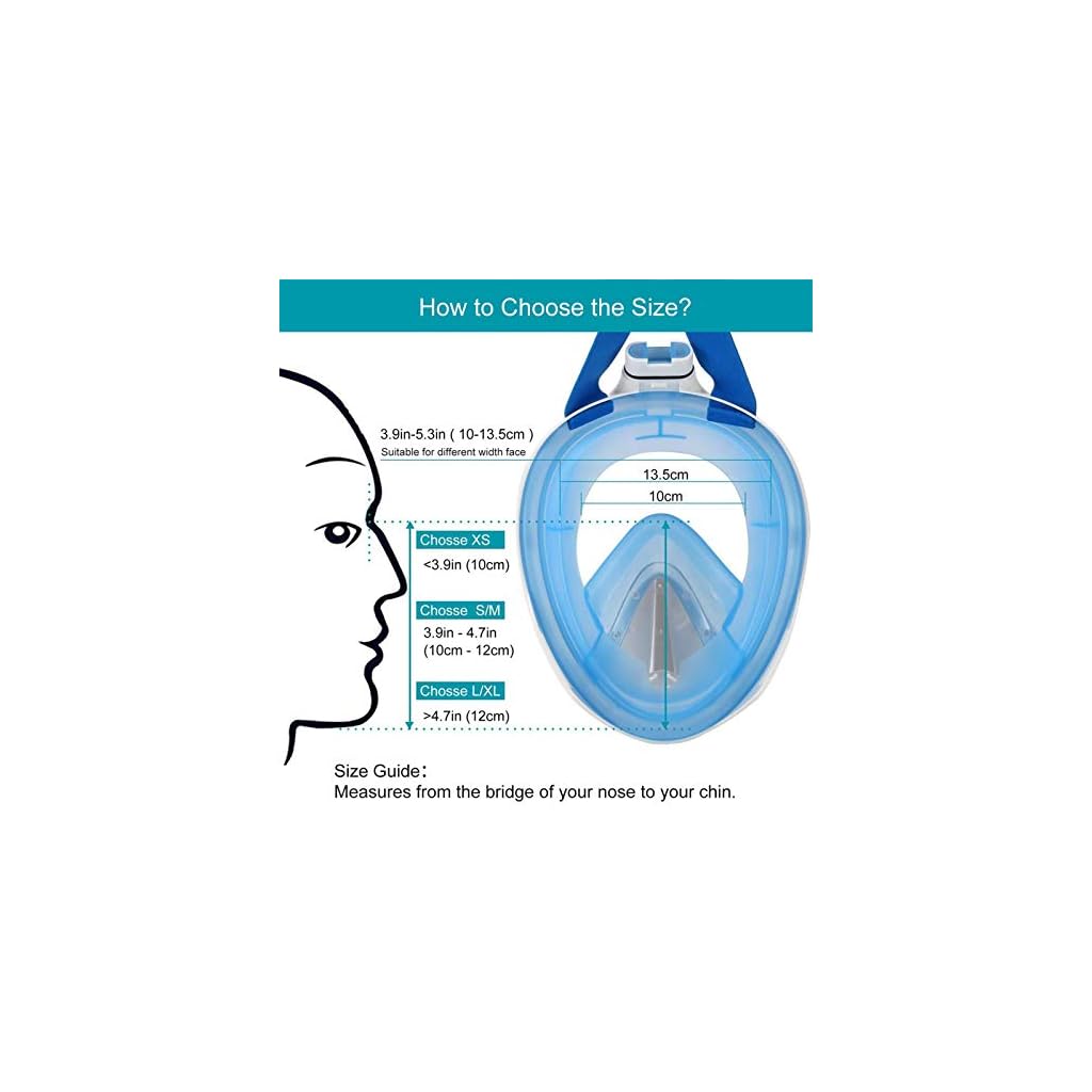 【Design für Kinder】Wenn das Maß weniger als 10 cm beträgt, wählen Sie die Größe XS. Nur für Kinder sorgt die Vollgesichts-Schnorchelmaske dafür, dass der Schnorchel mühsam im Mund gehalten wird und Kinder auf natürliche Weise atmen können.