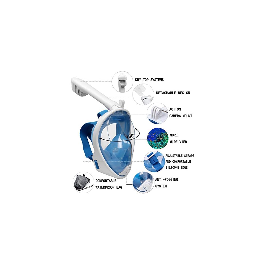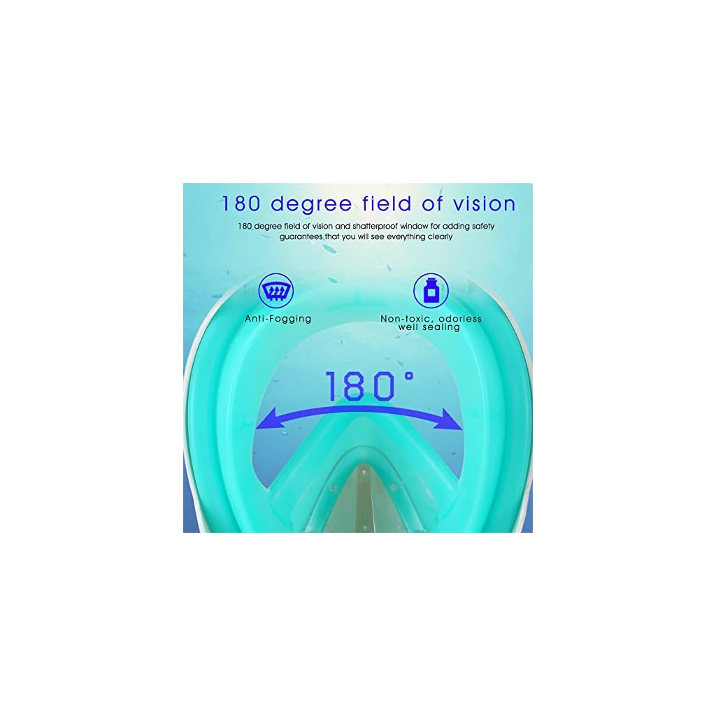 【Design der Vollgesichtsmaske】Versiegelte Vollmaske mit super breitem, bruchsicherem Sichtfenster bietet eine 180-Grad-Sicht unter Wasser. Sie können eine Vielzahl von Kreaturen auf dem wunderschönen Meeresspiegel klar und frei beobachten und schätzen.