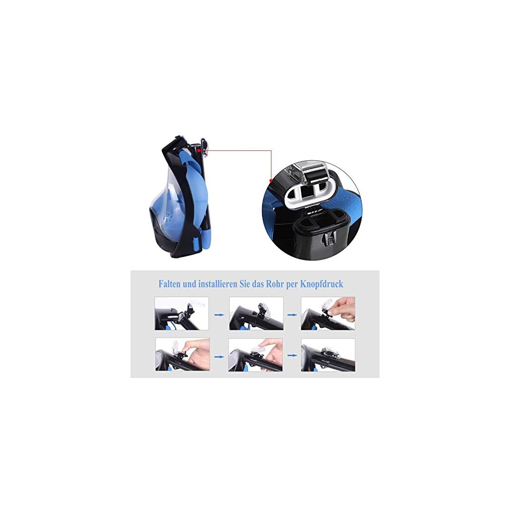 Kuyang Tauchmaske Vollgesichtsmaske Faltbare Schnorchelmaske Vollmaske mit 180° Sichtfeld und Kamerahaltung Tauchermaske Schnorchelbrille Schnorchelset Anti-Fog Anti-Leck Tauchmasken für Erwachsene