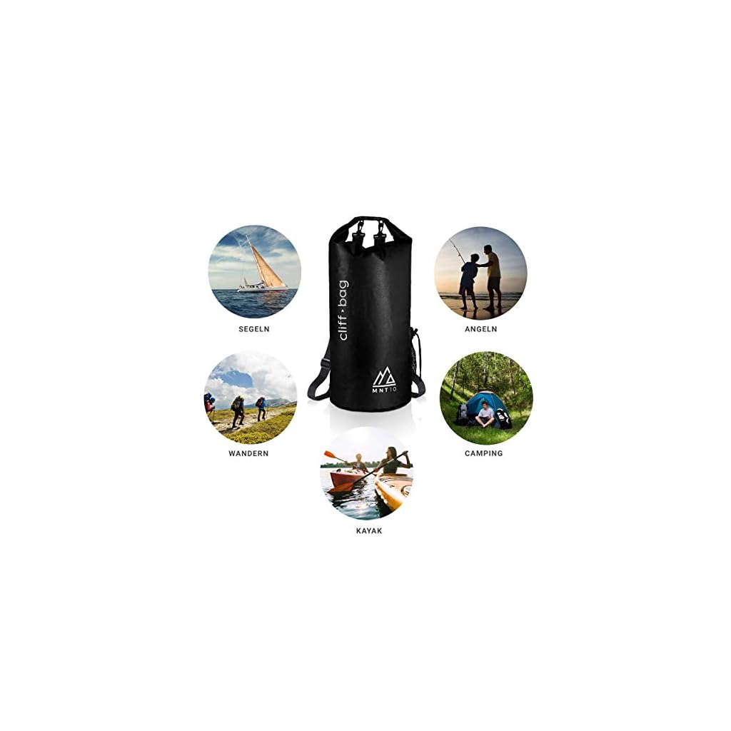 MNT10 Dry Bag βCliff-Bagβ in 20L, 30L, 40L I Drybag Rucksack fΓΌr SUP, Kanu, Kajak I Wasserdichter Packsack mit Schultergurte I Seesack wasserdicht I GRATIS wasserdichte HandyhΓΌlle (Schwarz, 20L)