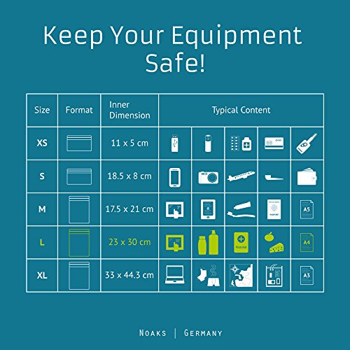 ORGANISIEREN & SCHÜTZEN | Schaffe Ordnung mit den Taschen von Noaks: Ideal zum Schutz von Kleidung, Elektronik, Tablet 10“, Reisedokumenten DIN A4, Lebensmitteln, Wertsachen, Wechsel-Klamotten, Kaffee, Tee uvm. | Wasserdichte Hülle auf Reisen, im Haushalt & bei Regen | auch als Kulturbeutel geeignet | Ein Muss für jede Ausrüstung
