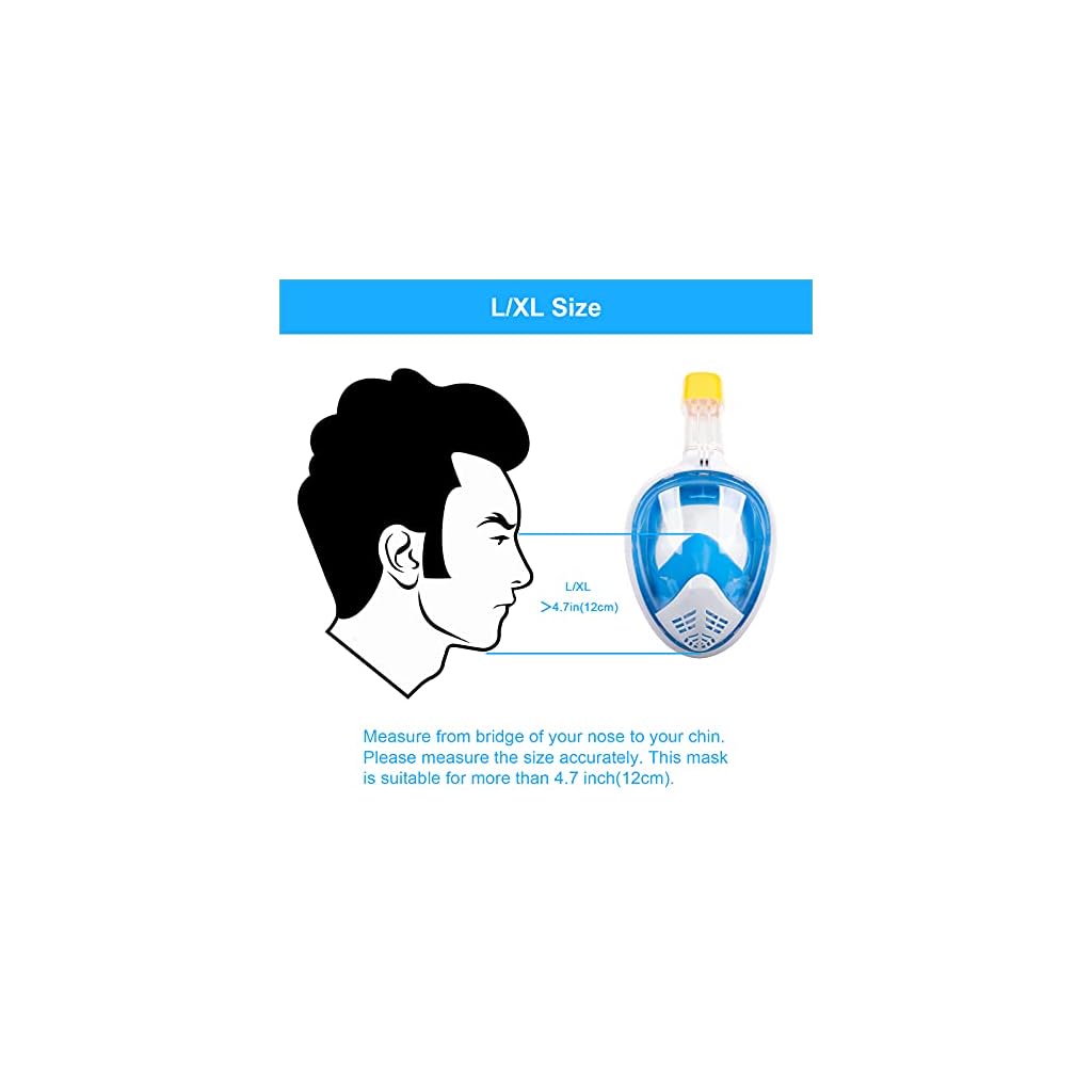 Die Vollgesichts-Schnorchelmaske verfügt über eine transparente Bogenlinse, die Ihnen beim Schnorcheln eine bessere Rundumsicht bietet. Die Tauchmaske verzerrt Ihre Sicht unter Wasser nicht und vermeidet Schwindel oder Unbehagen. Sie können Unterwasserabenteuer genießen und jeden wunderbaren Moment festhalten