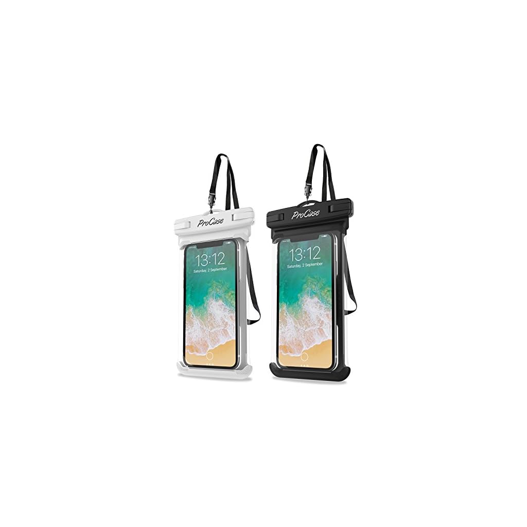 ProCase wasserdichte Handyhülle, für iPhone 14 Plus, Pro Max, iPhone 13, 12 Pro Max, 11 Xs Max XR X 8 7 6S Plus, Galaxy S22 S22+ S21 FE, bis zu 7 Zoll (17,8 cm), Weiß/Schwarz, 2 Stück