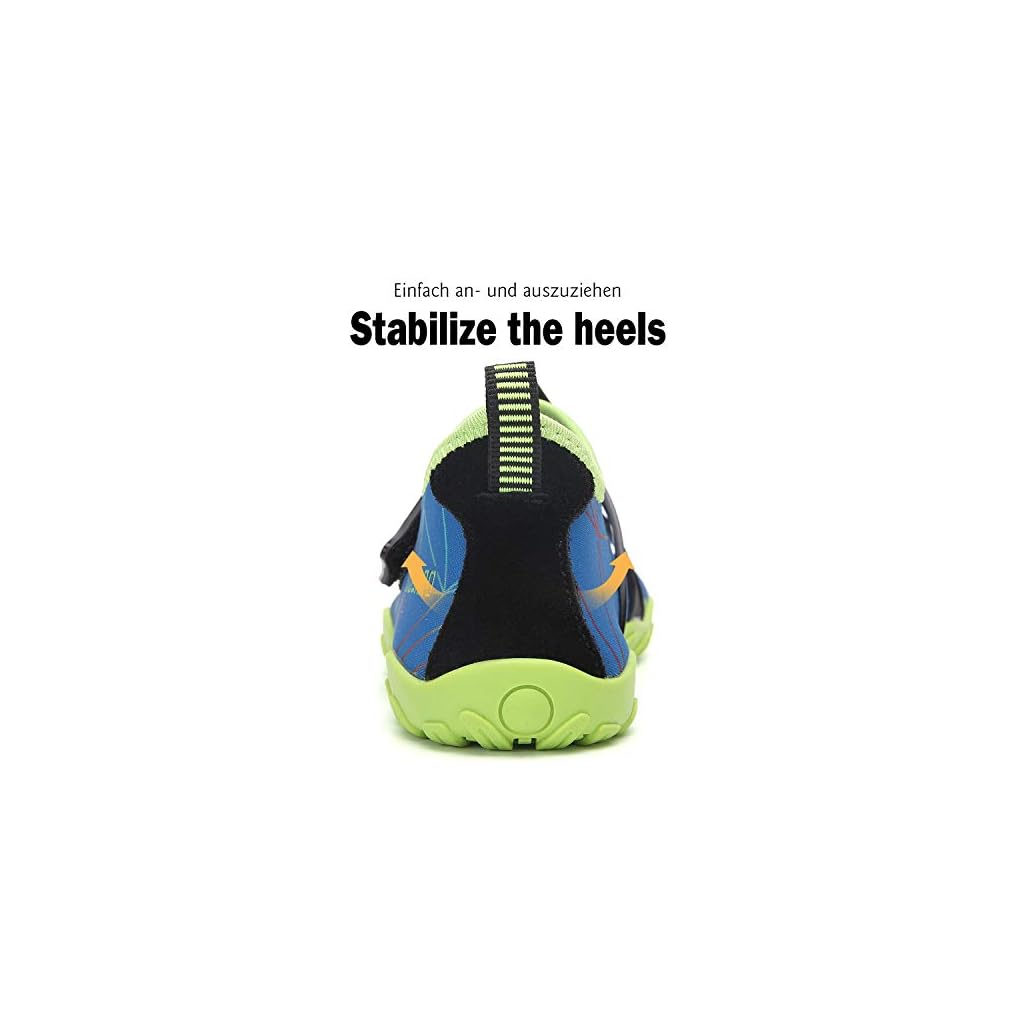 Obermaterial: Elastisches Mesh + 3D-Offsetdruck. Schnelltrockende und atmungsaktiv, nicht stickig.Die Größe dieser Kinderschwimmschuhe sollte eine Nummer kleiner sein, bitte kaufen Sie eine Nummer größer, damit sie bequemer zu tragen sind. Vielen Dank für Ihren Kauf.