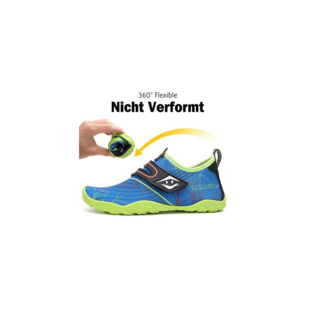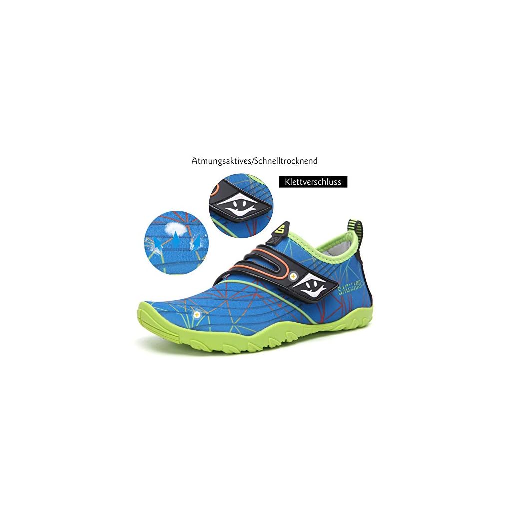 SAGUARO Badeschuhe Kinder Aquaschuhe Schnell Trocknend Schwimmschuhe Wasserschuhe rutschfest Strandschuhe Surf Tauchschuhe für Jungen Mädchen St.2 Blau, Gr.25 EU