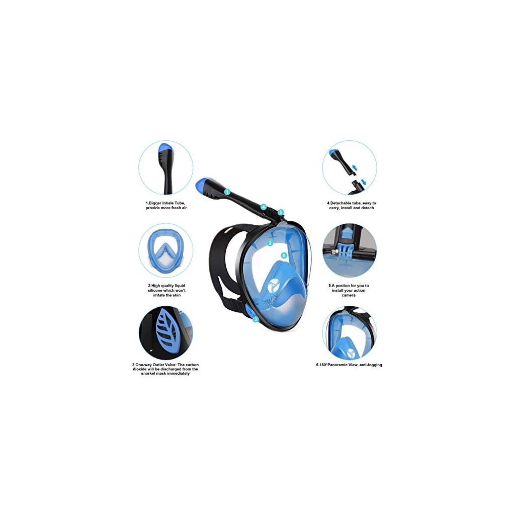 ♥【Einfaches Atmen und Anti-Beschlag】: Im Gegensatz zu normalen Schnorchel-Sets können Sie während der Verwendung einer Vollmaske atmen und durch die Nase oder den Mund atmen. Die natürliche Atmung hilft, Sie ruhiger und entspannter im Wasser zu halten. Dank unseres neuesten Atemsystems Die Atemkammer ist vollständig vom Sichtbereich getrennt, so dass das Ausatemgas sofort entladen wird. Das bedeutet, dass kein Ausatmen ins Sichtfeld gelangt und Nebel verursachen kann.