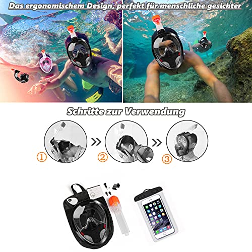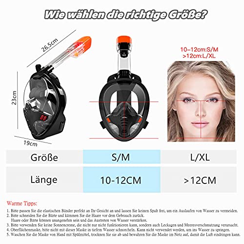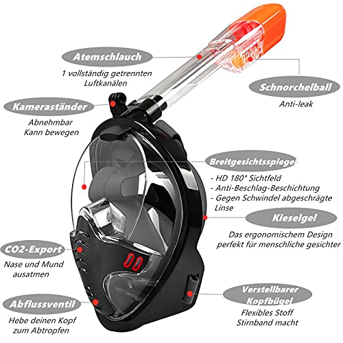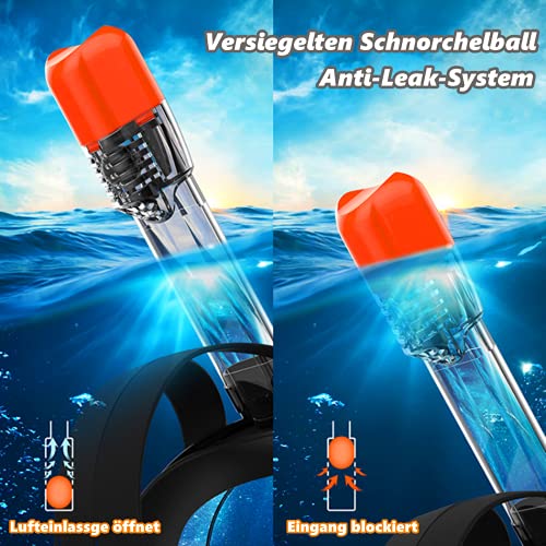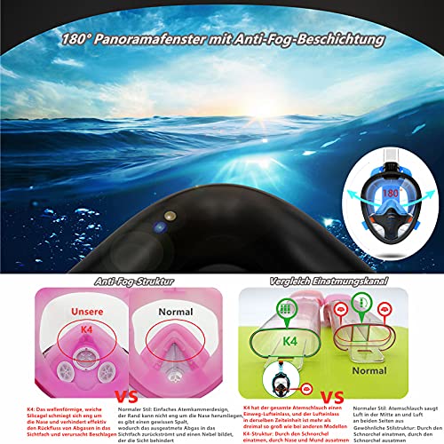 【180 ° Panoramic View Full Face Design】Unsere Schnorchelmaske verwendet eine transparente, gegen Schwindel abgeschrägte Linse, die die Sicht unter Wasser nicht verzerrt. Der 180 ° -Panoramablick bietet Ihnen einen klareren und breiteren Blick auf die Welt des Ozeans. 180-Grad-Panorama-Design mit Meerblick für ultimativen Komfort und Sicht!